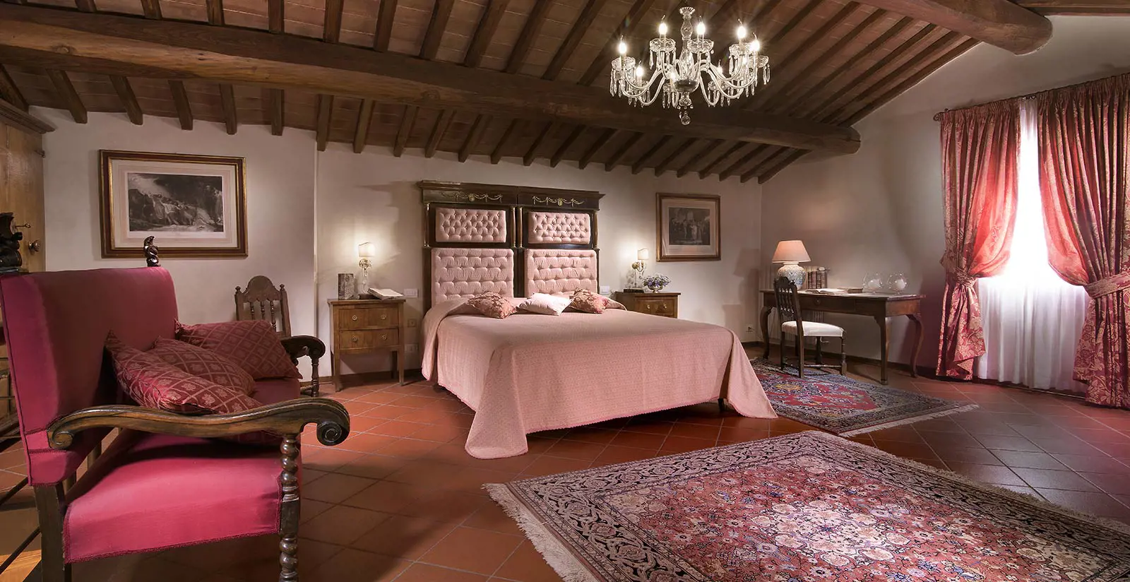 Affacciata sulle mura antiche che custodiscono il giardino all’italiana, la Suite Colombaia vi accoglie tra arredi d’epoca e tessuti fiorentini, in un’atmosfera sobria e raccolta. La luce entra ampia dalle finestre, accompagnando lo sguardo tra geometrie verdi e profili in pietra. Uno spazio pensato per chi cerca quiete e autenticità, nel cuore della villa.