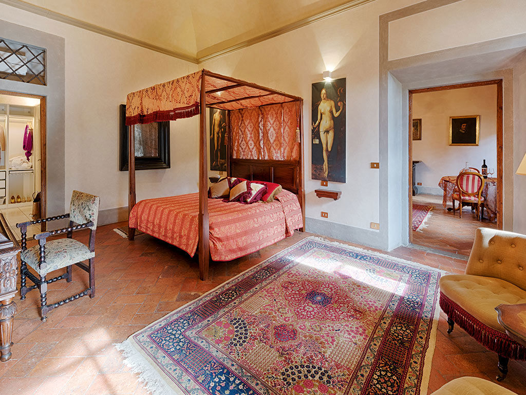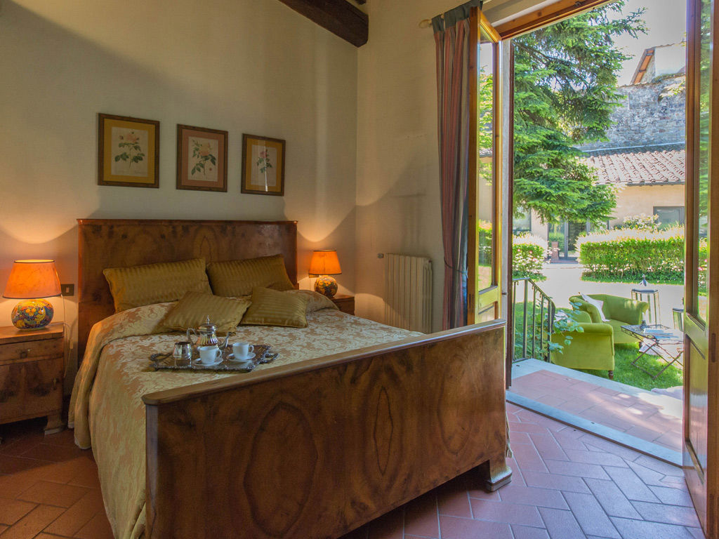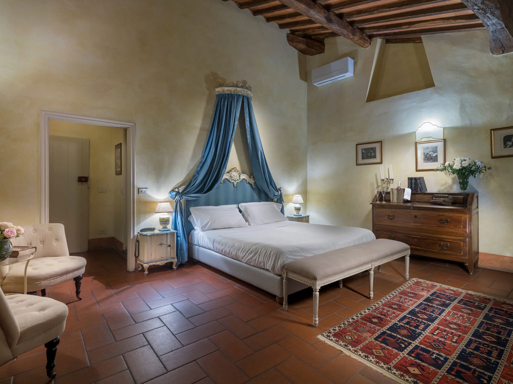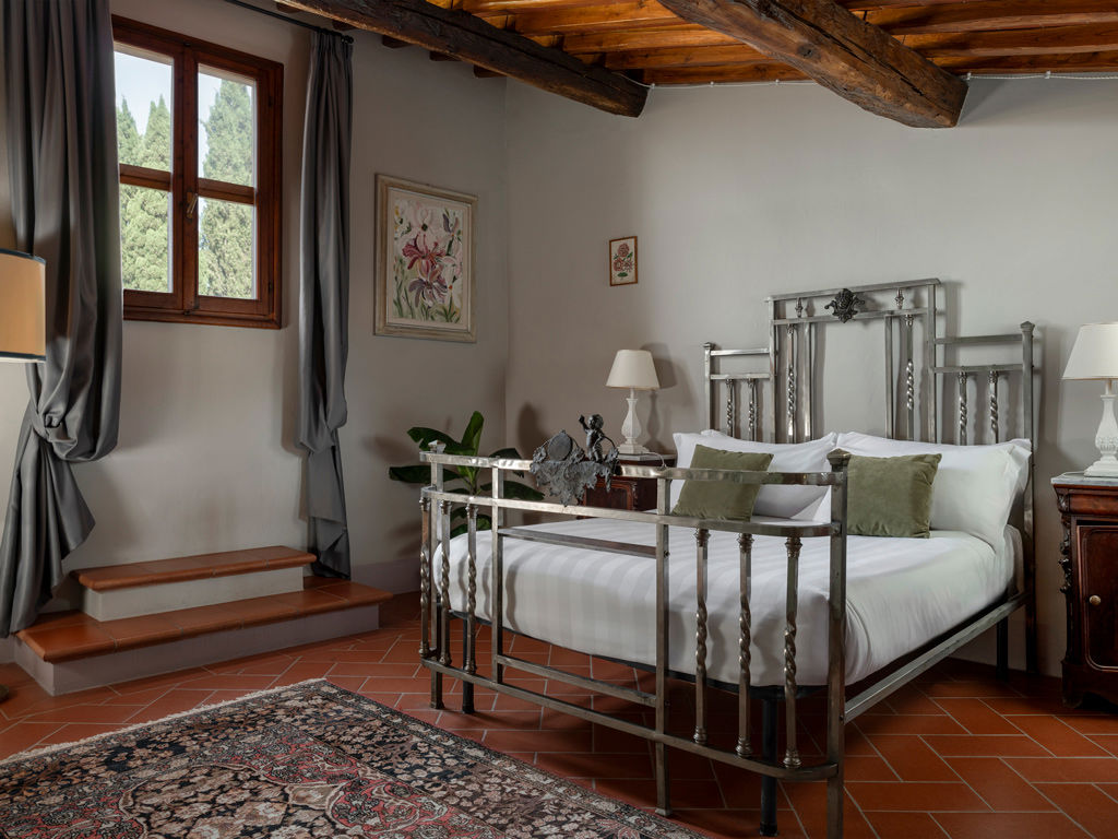 Each room reveals its own distinct character, united by an atmosphere of quiet refinement and timeless charm. Bathed in natural light and enriched by the serene presence of the villa, these interiors offer a sense of understated luxury rooted in history. A stay here invites guests to experience the enduring spirit of a medieval residence in the heart of Tuscany, perfectly positioned between Florence and the Chianti hills.