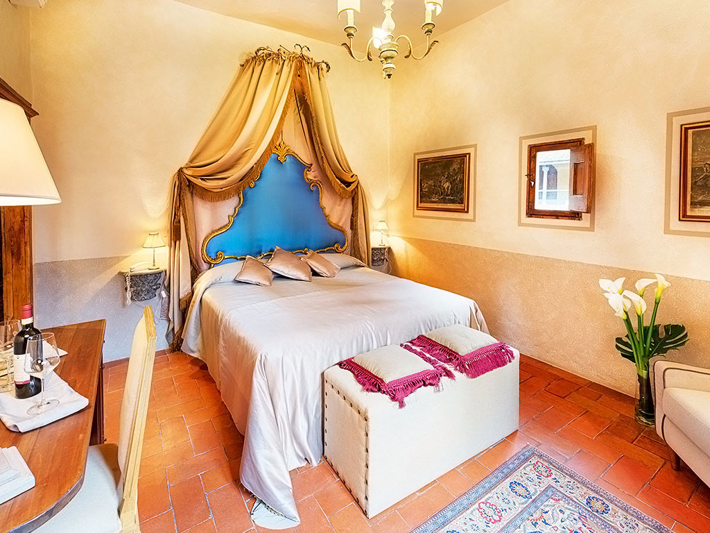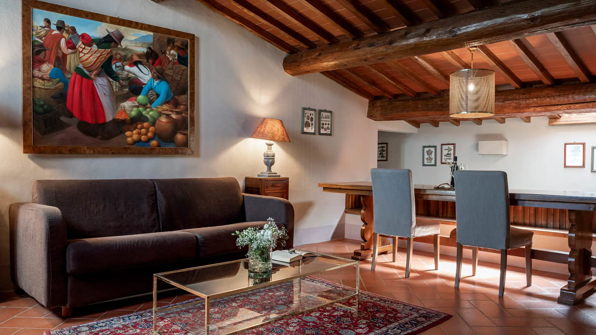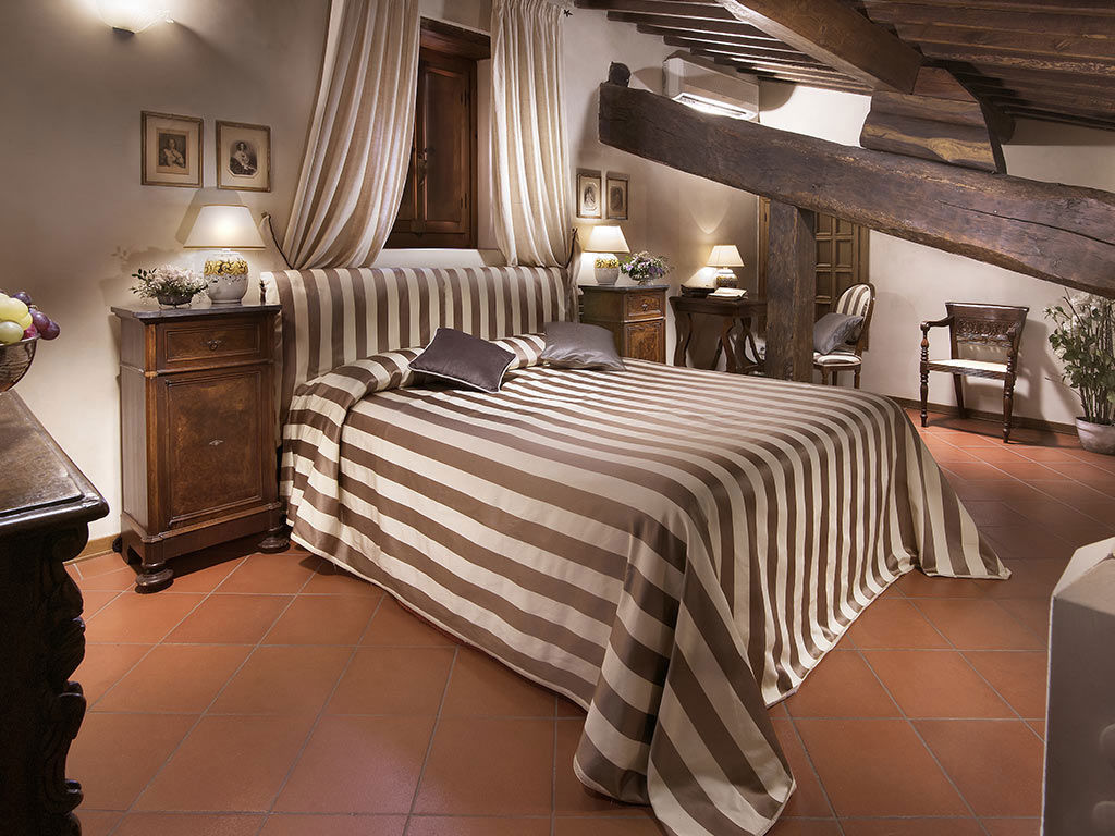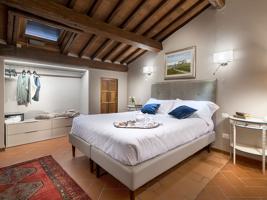Each room reveals its own distinct character, united by an atmosphere of quiet refinement and timeless charm. Bathed in natural light and enriched by the serene presence of the villa, these interiors offer a sense of understated luxury rooted in history. A stay here invites guests to experience the enduring spirit of a medieval residence in the heart of Tuscany, perfectly positioned between Florence and the Chianti hills.