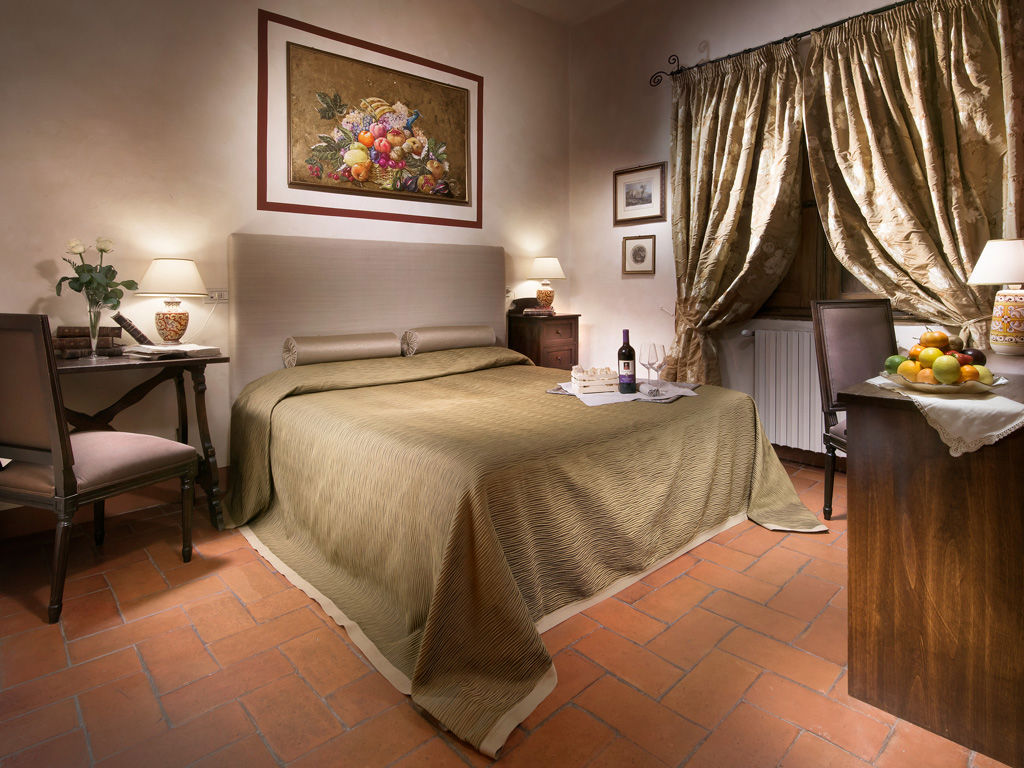 Located on the second floor of the villa, the Basic Rooms offer an intimate retreat for guests seeking comfort within an authentic historic setting. Terracotta floors, warm natural tones and traditional wooden furnishings create an atmosphere of understated elegance, fully in harmony with the character and heritage of Villa Casagrande. Ideal for shorter stays, these rooms preserve the essence of Tuscan style in a refined and thoughtfully appointed space, where simplicity is elevated by the quiet charm of a medieval residence.