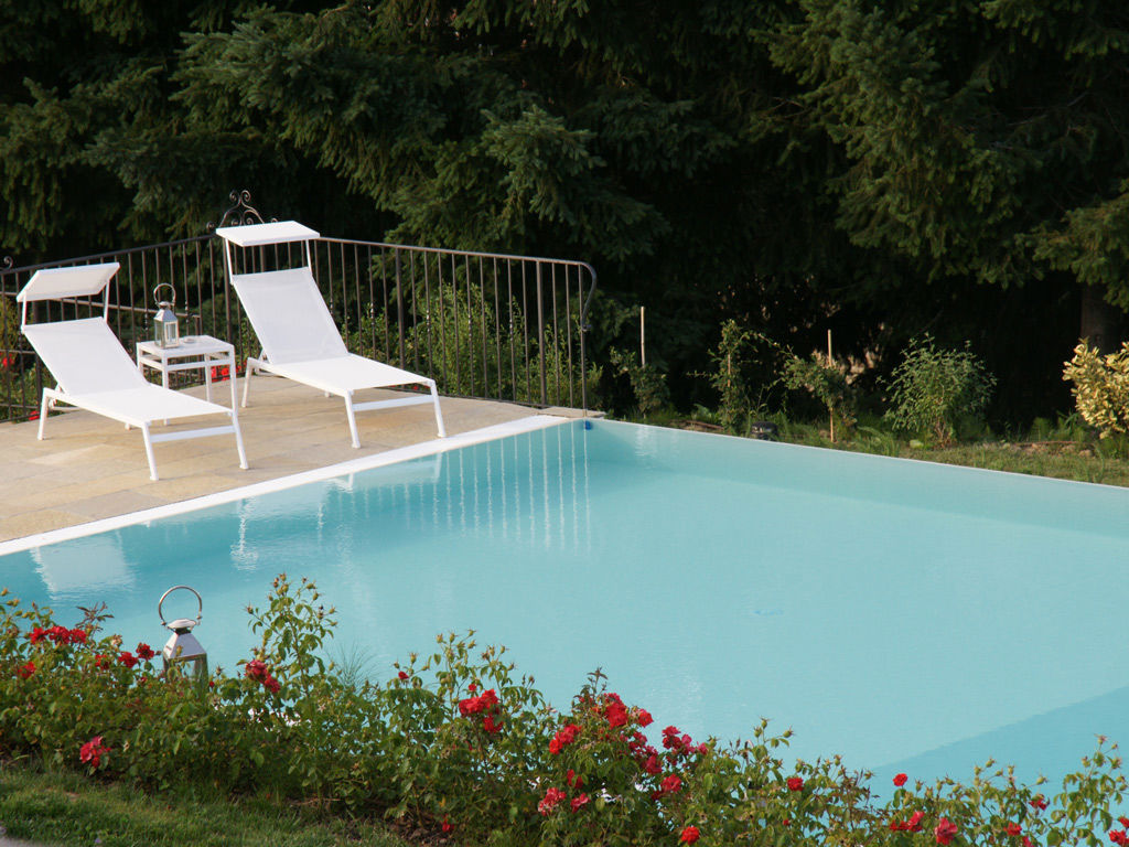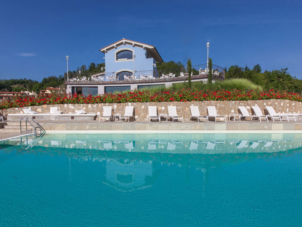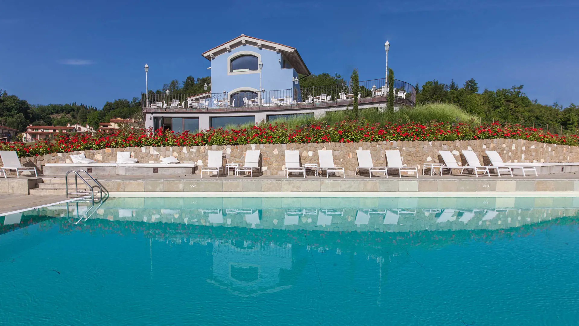 Poco distante dal corpo principale, oltre i giardini e la strada, si apre la piscina a sfioro di Villa Casagrande. Circondata da prati curati e colline, quelle verdi e dolci del Valdarno, offre anche un’ampia area solarium con lettini e ombrelloni.